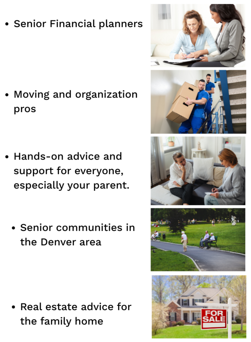 Denver RIGHTSIZING is led by a Denver Real Estate Agent to help families create a clear plan for the entire family using: